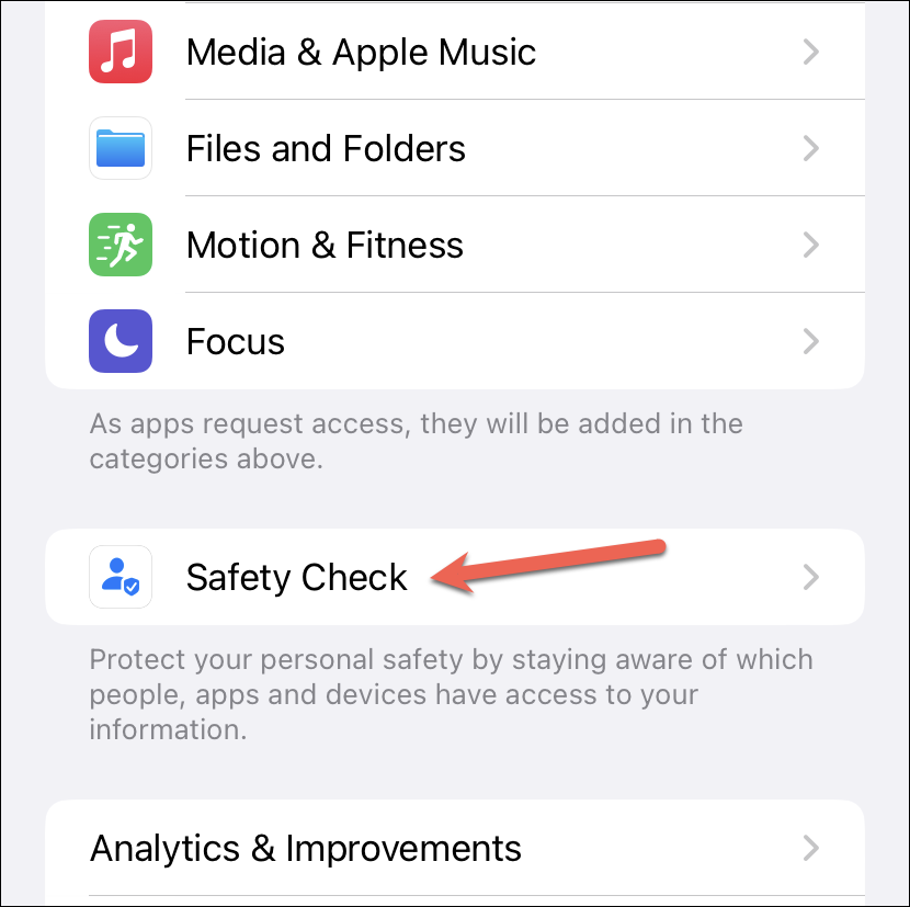 In the Privacy Settings screen, again scroll down until you find the option for ‘Safety Check’.