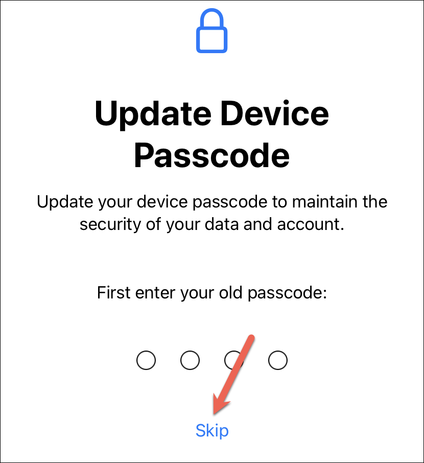 Finally, update your device passcode if someone else has access to it. Otherwise, tap ‘Skip’.