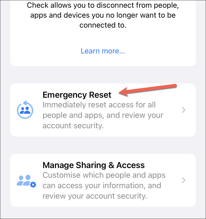 In a critical situation, completely revoking access for all people and apps might be the safest way to go. To immediately reset access for all people and apps, tap the option for ‘Emergency Reset’.