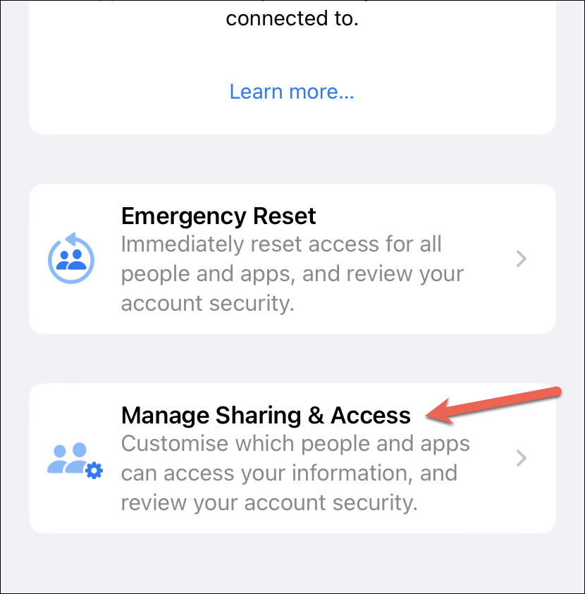 To customize access for people and apps instead of revoking everything for everyone, tap the option for ‘Manage Sharing & Access’ from the Safety Check settings.