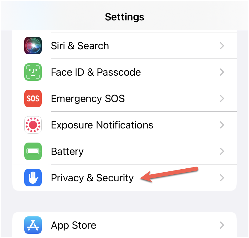 Then, scroll down and tap the option for ‘Privacy & Security’.