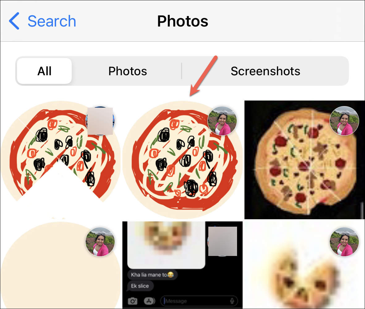 - Then, you can start searching for the message by typing a phrase, or you can combine it with another search filter, say 'Photos' or 'Documents'. Tap the filter below the search bar to use it. For example, we used the 'Photo' filter here.