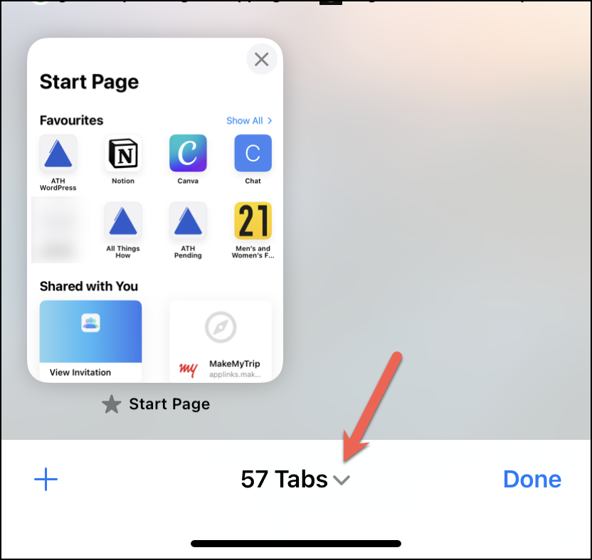 The tabs will open in a grid view. Tap the downward arrow next to ‘N Tabs’ from the toolbar.
