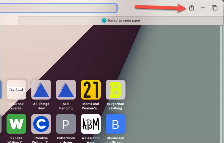 Click the ‘Share’ icon at the right of the address bar.