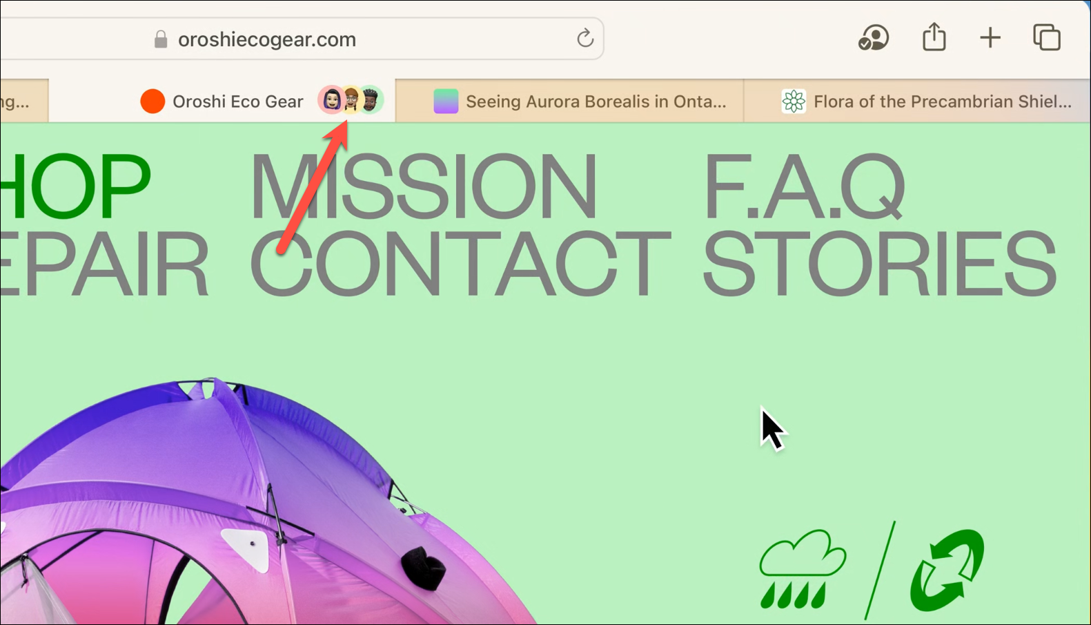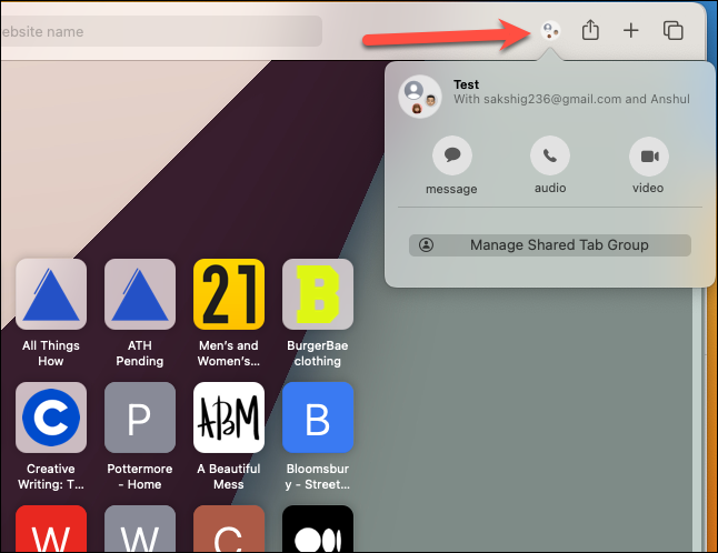 The process for sharing a tab group is the same for the Mac. The only difference is in how you access the tab group.
