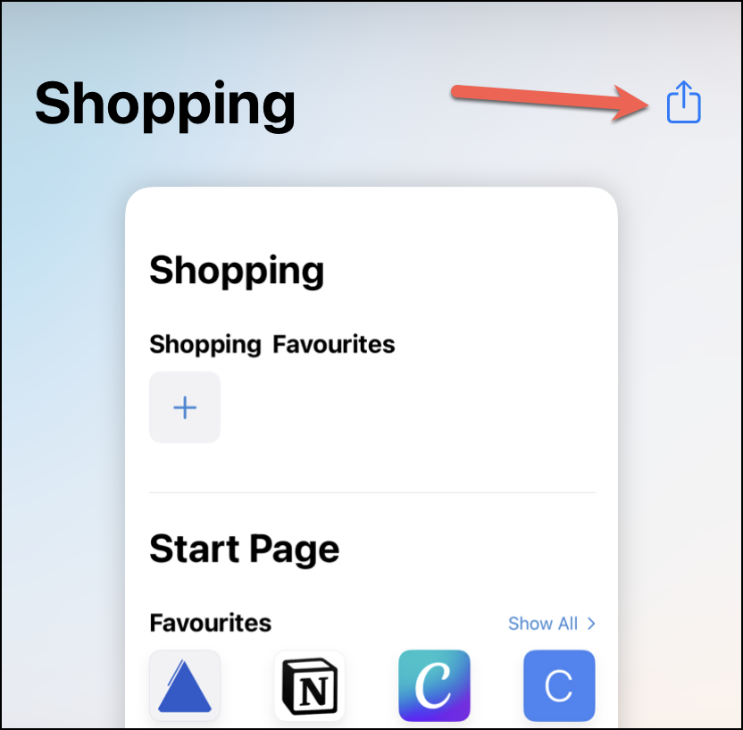 When the tab group is in the grid view, tap the ‘Share’ icon in the top-right corner of the screen.