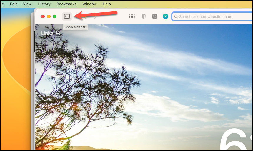 Open Safari on your Mac, and click the ‘Sidebar button’ from the left of the address bar if it isn’t already open.