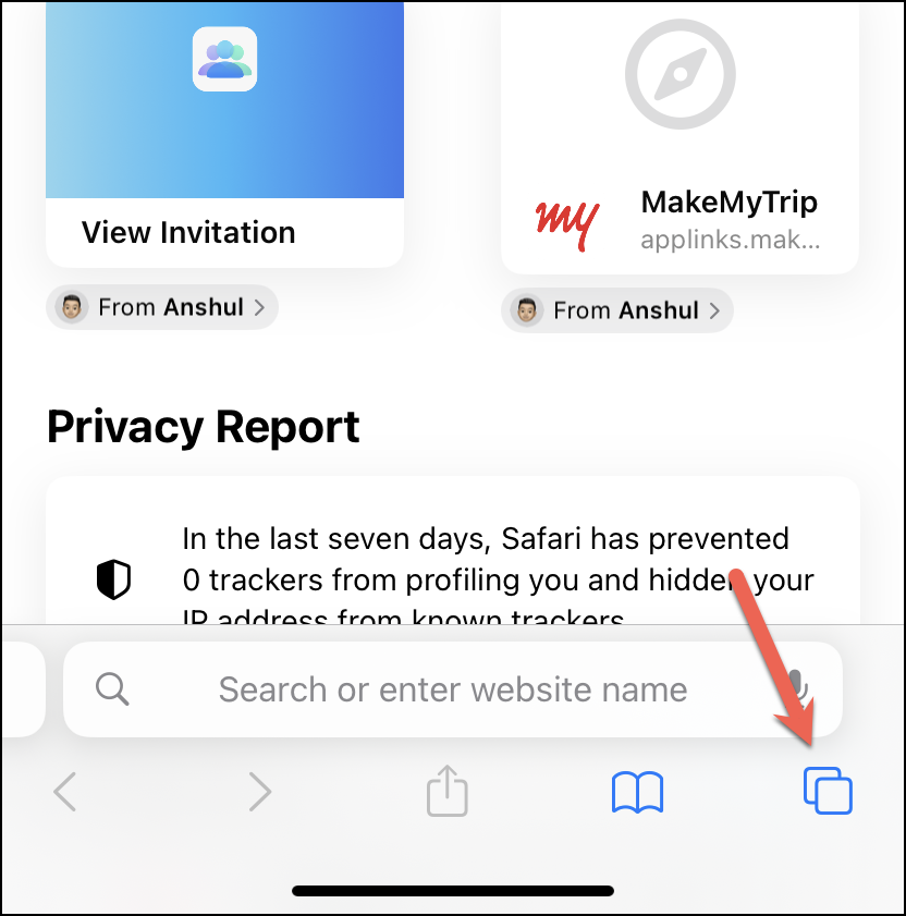 On your iPhone, open Safari. Then, tap the ‘Tabs’ icon from the bottom-right corner of the screen.