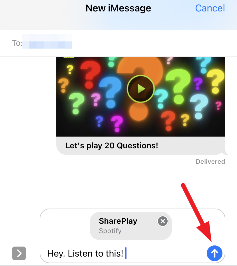 The Messages app will open and the link to the SharePlay session will already be in the message box. If you want, you can add a message along with the link. Then, tap the ‘Send’ button.