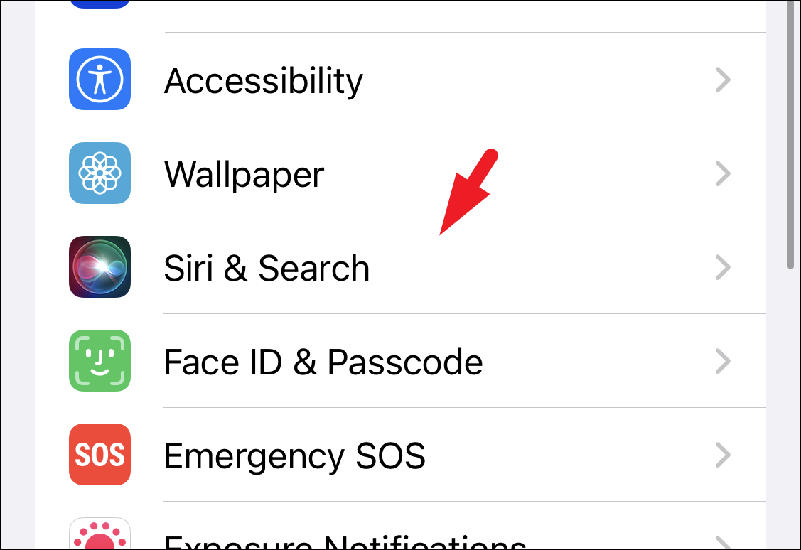 After that, tap on the ‘Siri & Search’ option from the list to continue.