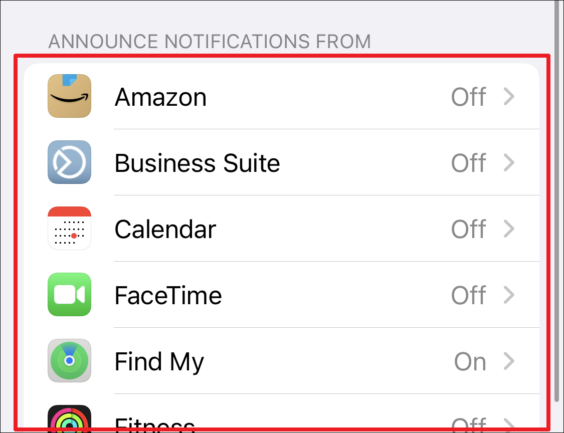 You can also configure from which app Siri should read out notifications by toggling them ‘On’ or ‘Off’ from each app’s individual setting on the same page.