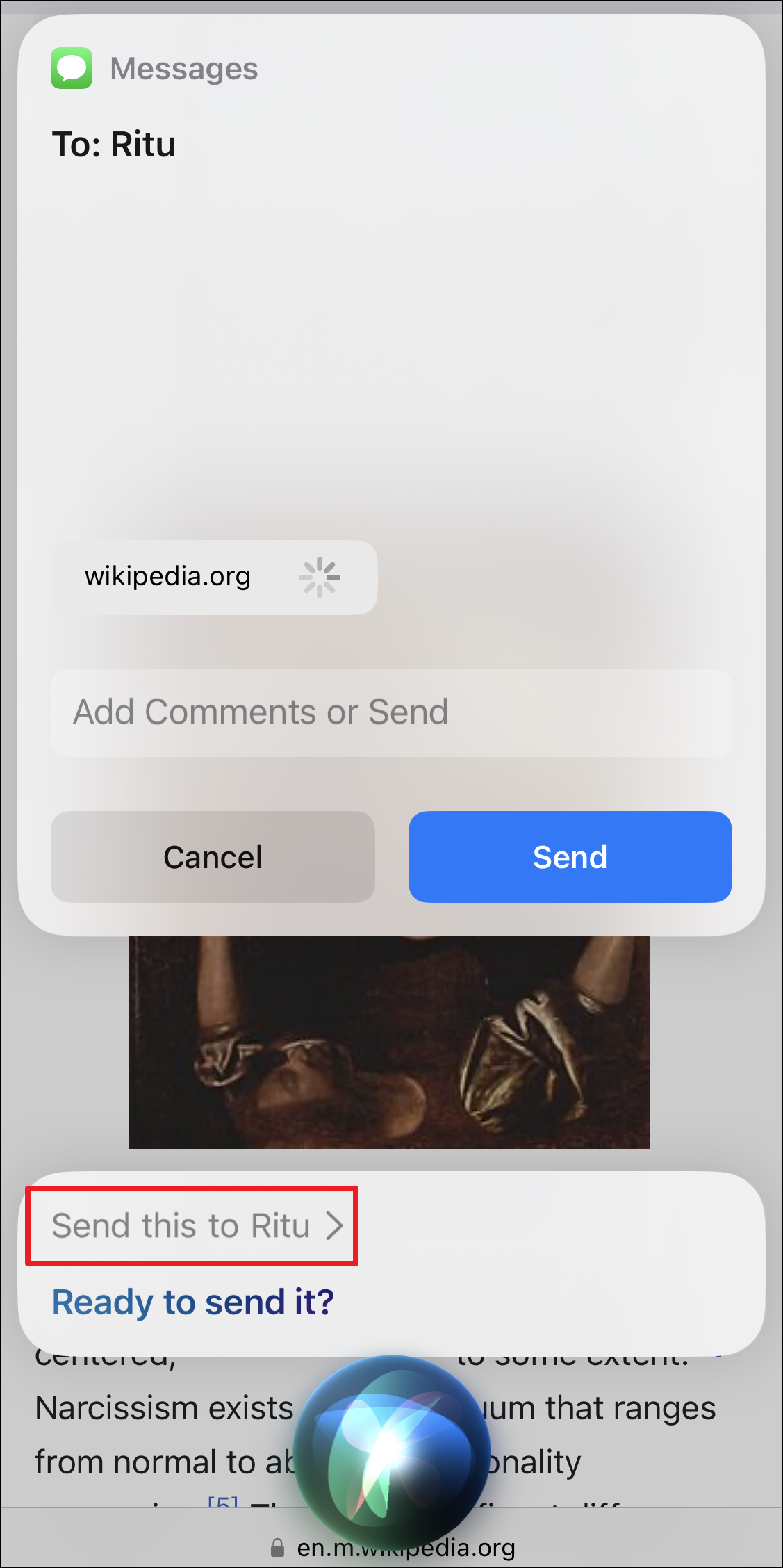 If you wish to share content using Siri, you can simply ask it to send it by saying, “Hey Siri, Send this to <Contact Name>”; and it will load the content directly in a message. You can also press the side/ home button to activate Siri, instead of beginning the requests with “Hey Siri”.