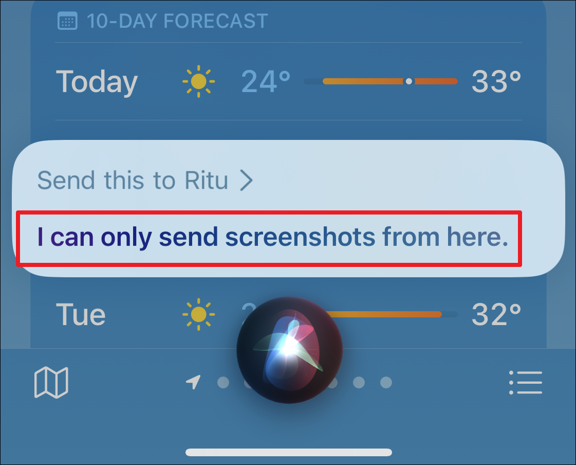 In case the content you wish to share is not shareable directly, Siri will state that it can only share screenshots from there and load the screenshot in the message.