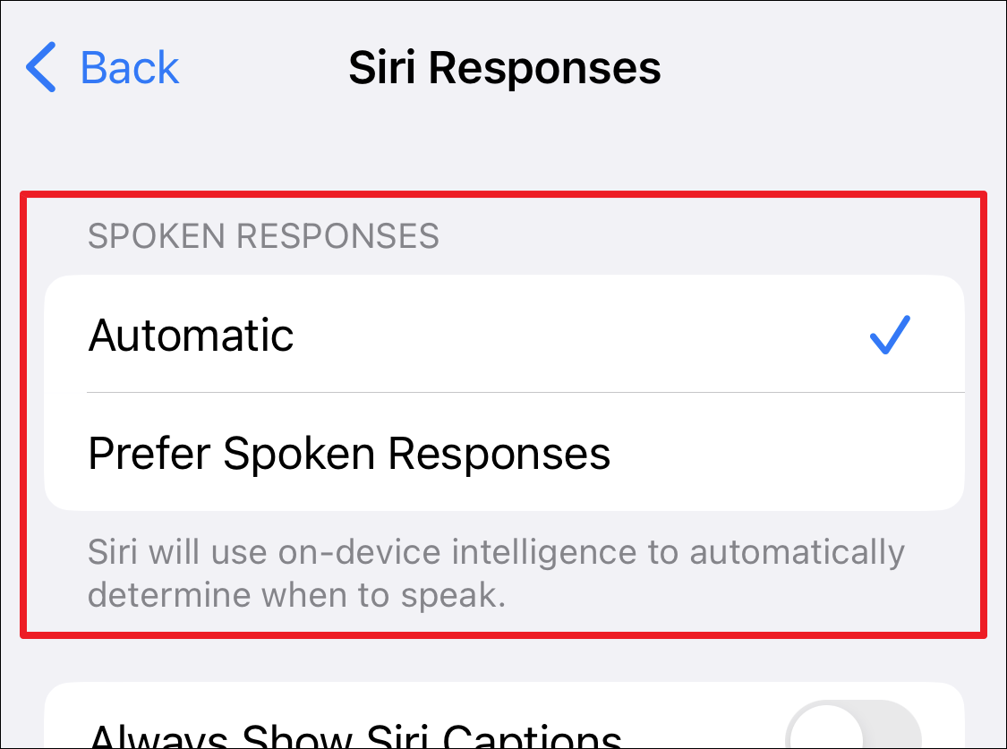 Then, if you wish to always get a response from Siri when you dictate a command, tap on the ‘Prefer Spoken Responses’ option.