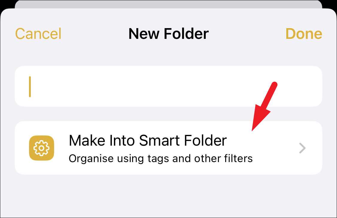 Next, tap on the ‘Make Into Smart Folder’ option.
