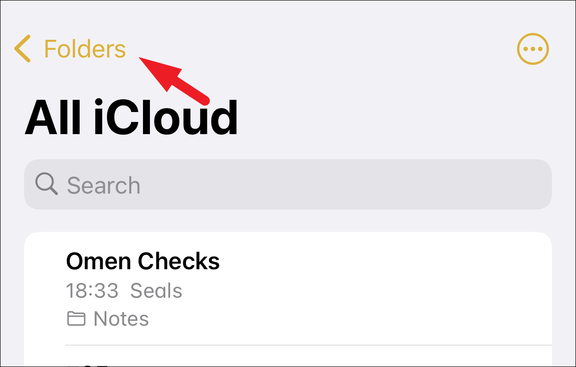 Then, on the Notes app, tap on the ‘Folders’ button to head to the Folder view if not already present there.