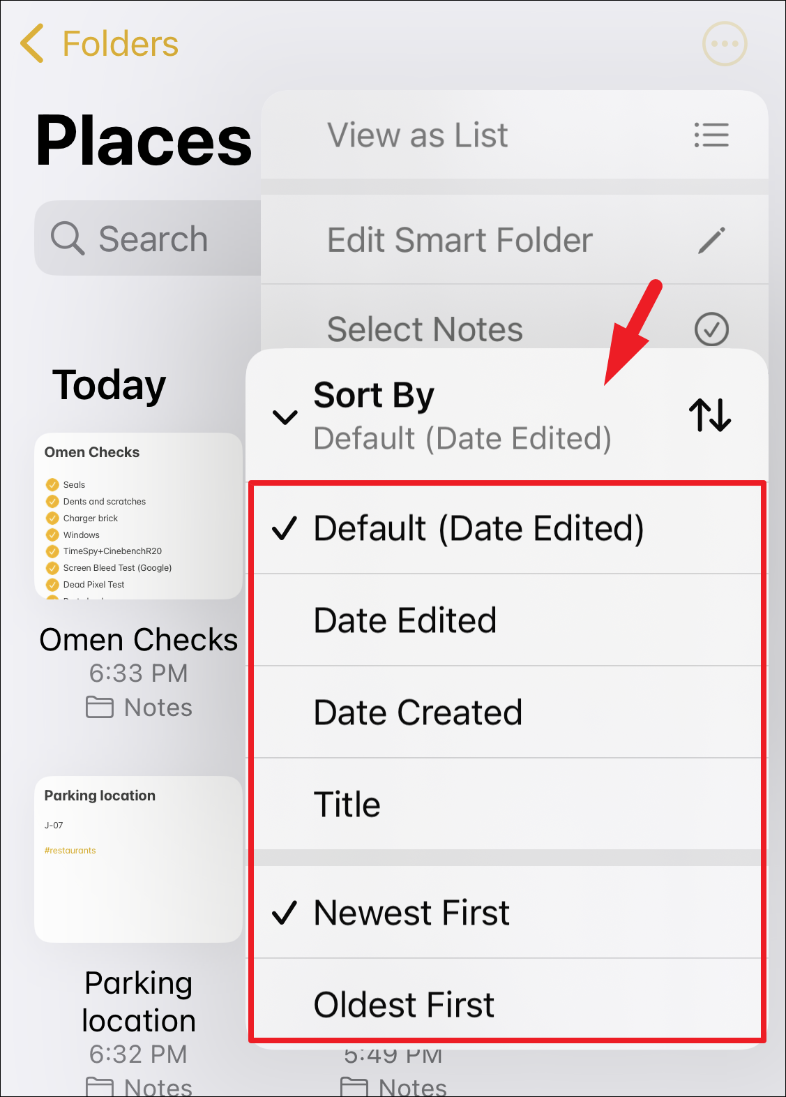 If you want to change the sort order for notes, tap on the ‘Sort By’ option and then select the sort order preferred by you.