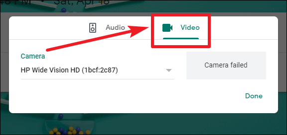 Click on the ‘Video’ tab on the pop-up menu to go to video settings. Then, click on the drop-down menu for Camera.