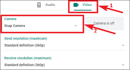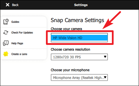 Note: If Snap Camera isn’t available in the list of options, refresh the page.