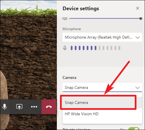 Note: If the Snap Camera option isn’t available in the list of devices, restart the Microsoft Teams application.