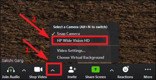 To turn off Snap Camera filter in an ongoing Zoom meeting, click on the ‘arrow’ icon next to the ‘Stop Video’ button on the host control bar at the bottom of the screen. You’ll see the ‘Snap Camera’ and ‘<Your Device Camera Name>’ under the ‘Select a Camera’ section in the menu. Click on your device camera to switch back to the normal camera feed.