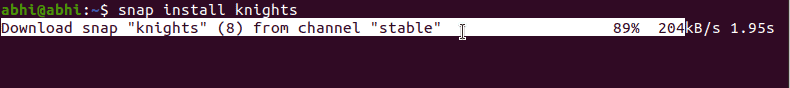 Snap will now perform the required steps to install the package and print a progress bar on the terminal.