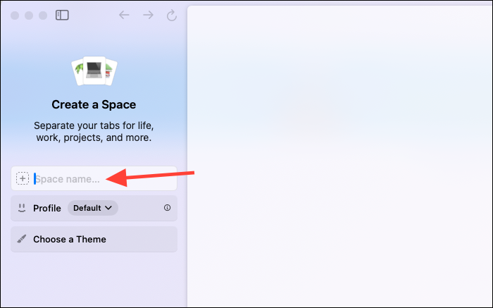 When you install the Arc Browser, it'll automatically create the first Space for you. This will be the Space you're currently using.