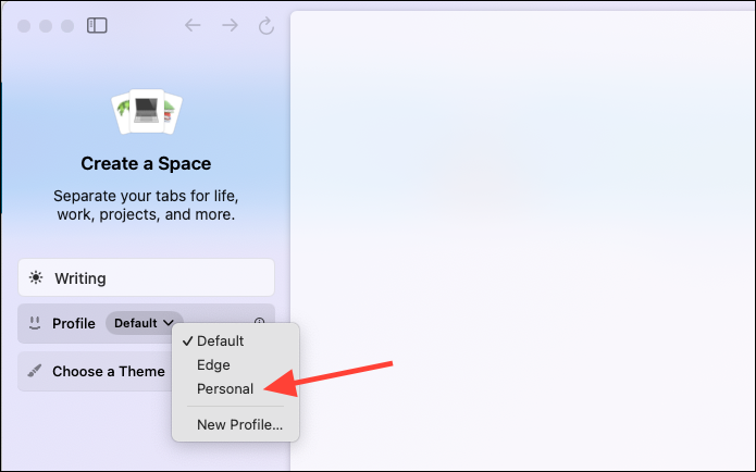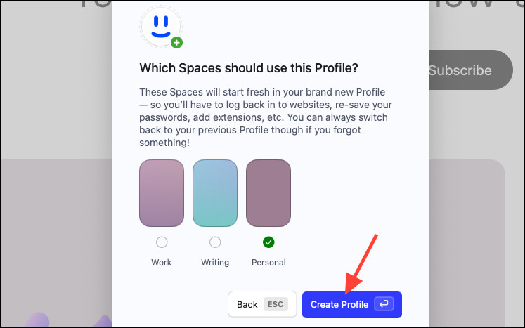 - Next, select a Profile (if there are more than one) for the Space; you can also create a New Profile.