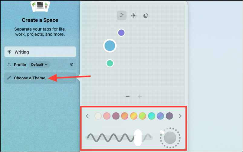 Ctrl+Space numberkeyboard shortcut (e.g.,Ctrl+1,Ctrl+2, etc.) to switch between spaces. - If you're using a trackpad, a two-finger swipe left or right in the Sidebar will also switch between spaces.