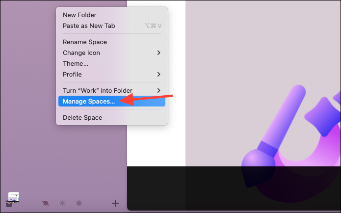 - To manage your Spaces, right-click on the empty space in the sidebar and select 'Manage Spaces' from the menu.