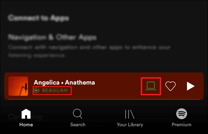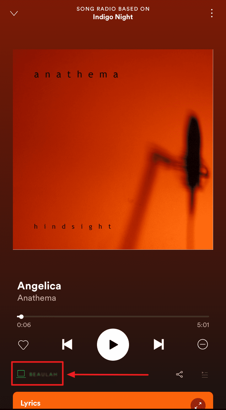 Tap this button to see the device that’s currently playing your Spotify music under the ‘Listening on’ title – all in green.