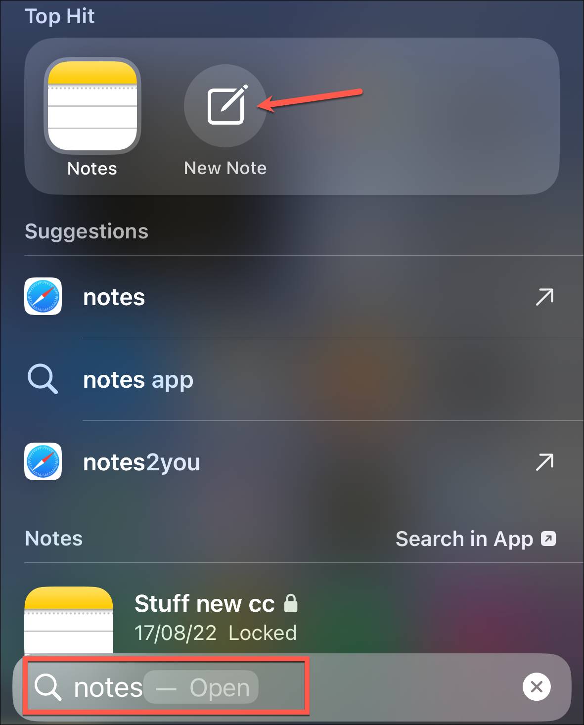 - For example, when you search for an app like Notes, you can quickly access app shortcuts, like creating a new note right from Top Hit.