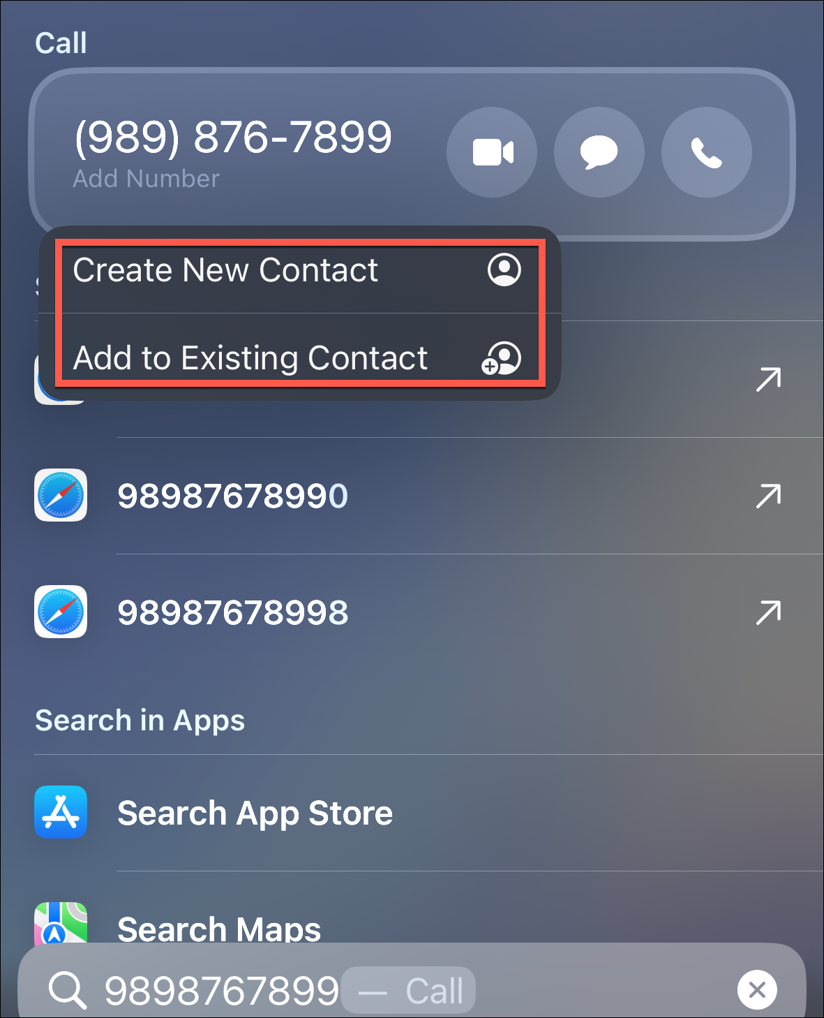 Call, Message, or Add a Contact from Spotlight