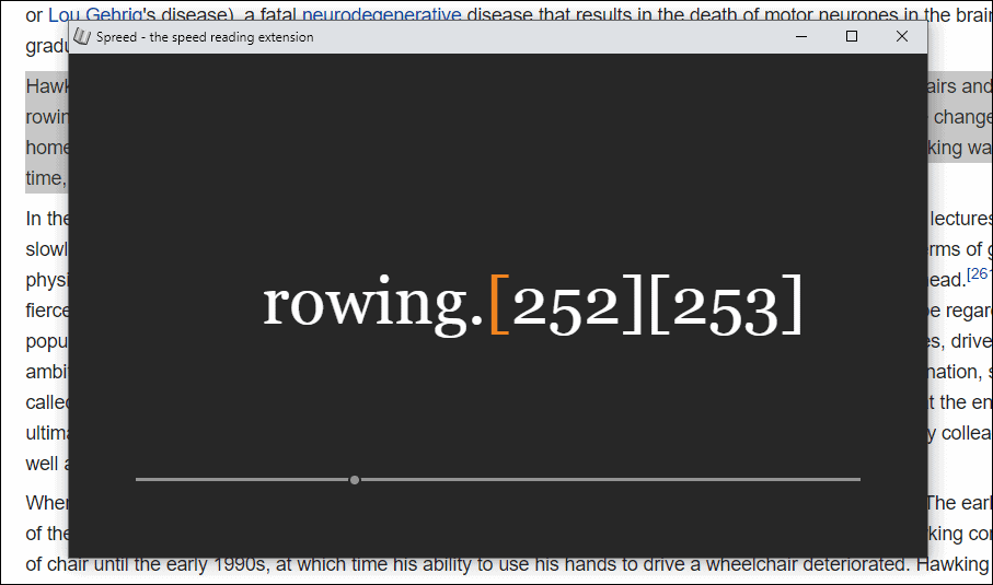 Spreed will open, displaying the content of the webpage in a format optimized for rapid reading.