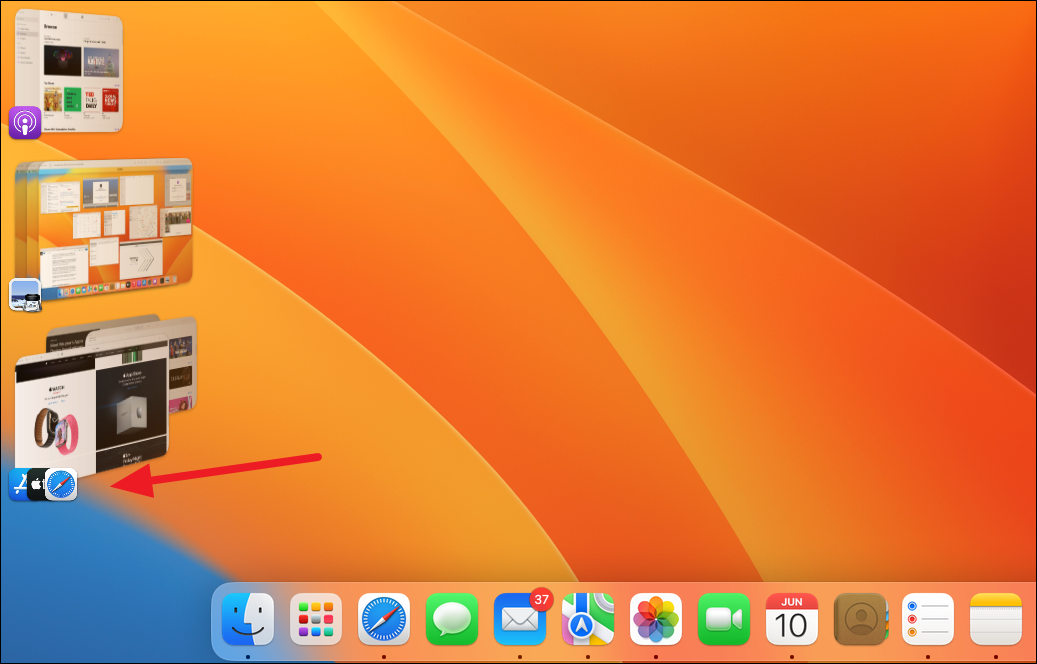 If any of those apps have shortcuts in the dock, you can also use the dock to open them. But unlike normal circumstances where minimized apps appear on the right side of the dock, as long as the Stage Manager is active, the apps you minimize after activating the Stage Manager won’t appear there – even the apps that aren’t visible on the left side.