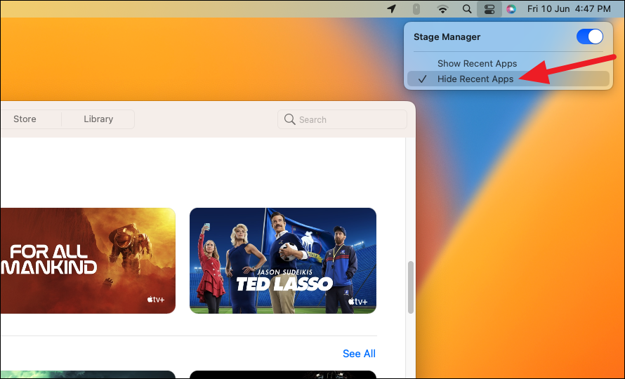 When the Stage Manager is active, any files on your desktop are not visible. If you want to view the files on your desktop, you can tuck away even the open app. Click anywhere on the desktop and the current app will gracefully hide away, leaving only the desktop in view.