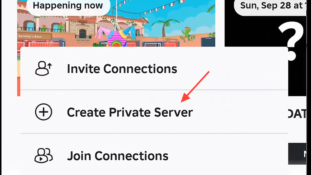 Step 2: Scroll down the page until you reach the area that lists servers and social options. Look for the control that lets you create a private server.