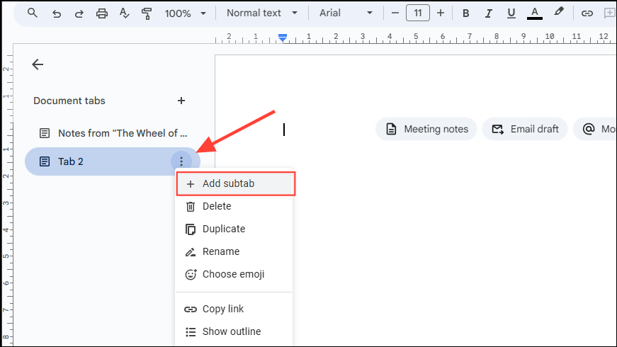 When you open a Google Docs document, the panel on the left will open automatically so you can access the tabs in the document easily. However, the panel will not open if there is only one tab that has content in it. You can locate tabs in a document in the following manner.
