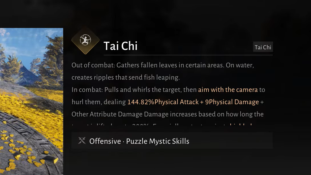 Although it is built as an offensive Mystic Skill, Tai Chi also interacts with several world objects.