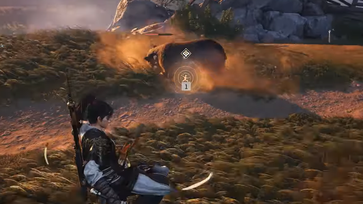 Step 3: While the bear is spinning, keep the camera locked on the rock pile. When the throw triggers, the bear will slam into the rocks, dealing massive damage and breaking the formation, revealing a chest underneath.