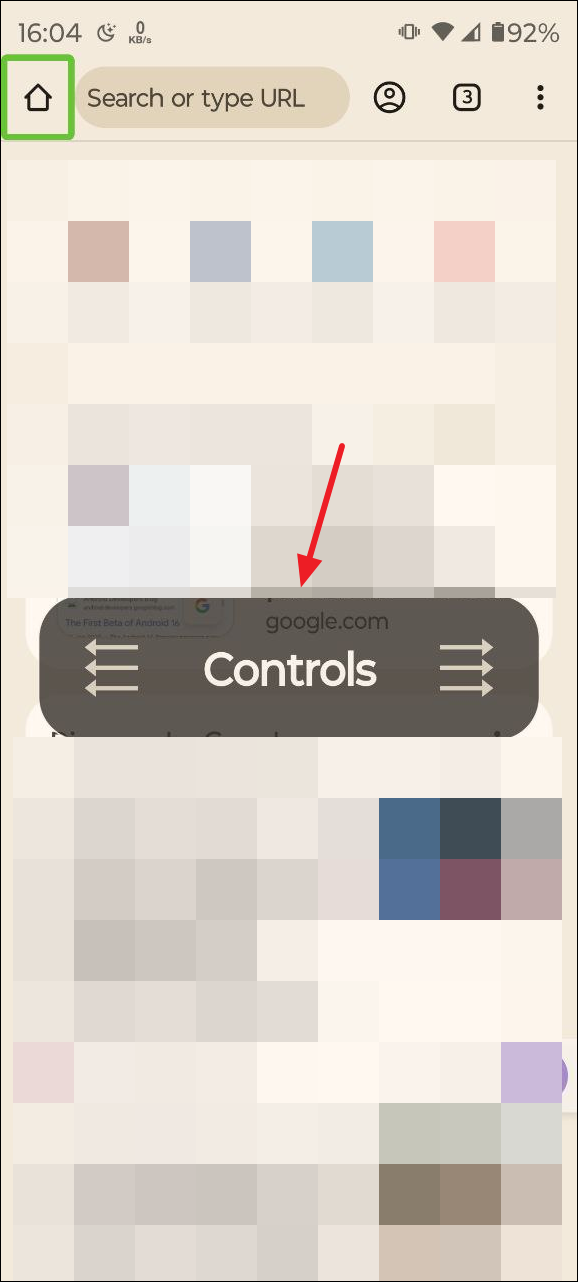 - When Chrome opens, swipe left or right with three fingers again to go to the 'Controls' mode again. Then swipe up or down using one finger until TalkBack says 'Search or type URL'.