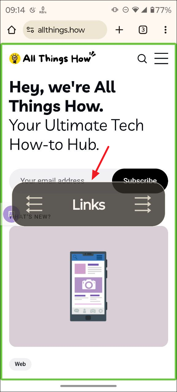 - When the website opens, swipe left or right with three fingers until you get to 'Links'. Then you can swipe up or down and TalkBack will speak aloud the names of the links on the page.