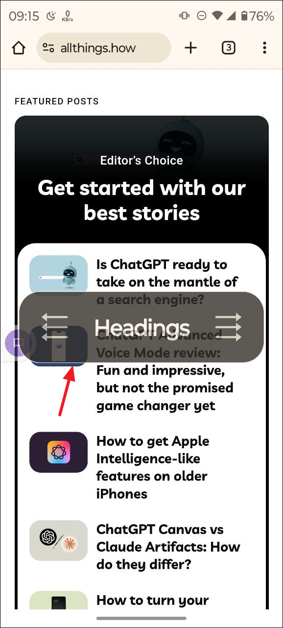 - You can double-tap on your screen after hearing the name of a section to navigate to it quickly. Once inside a section, swipe left or right with three fingers until you see 'Headings', which will let you browse the page easily. Then swipe up or down with a single finger and TalkBack will read aloud the contents of the page.