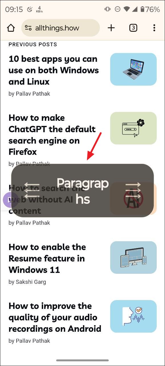 - To read an article, double-tap on it and then you can use TalkBack to read just the headings or the entire article. It can read one character at a time, one word at a time, one line at a time, or one paragraph at a time. Swipe left or right with three fingers to select your preferred mode and then swipe up or down with one finger.