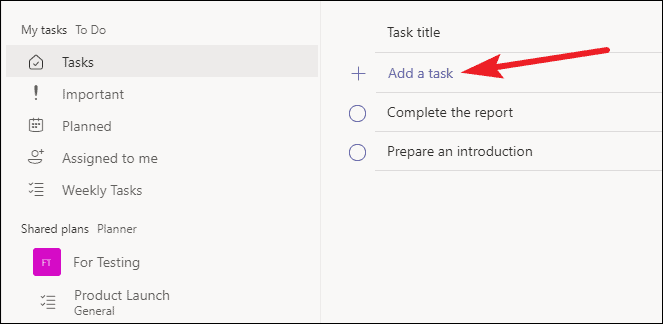 You can add the Tasks app as a system-wide app in Microsoft Teams or as a tab in a channel. When you add Tasks as a tab in the channel, it won’t include your personal tasks from To-Do.