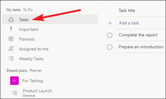 The Tasks app on Microsoft Teams shows your tasks in two sections: ‘My Tasks’ and ‘Shared Plans’.