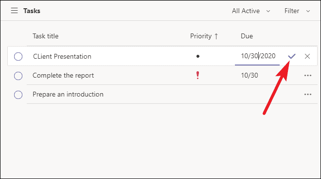 Enter the title for the task, and a priority status or due date if there is one. And click on the ‘OK’ button (checkmark icon) to save the task.