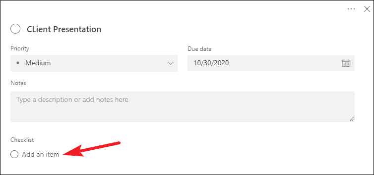 The editing window will open. Go to ‘Checklist’ and add subtasks for the task where it says ‘Add an Item’.