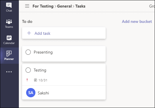 Similarly, for a new shared plan task, go to the Plan name and click on the ‘Add a Task’ option. The only difference for a new task in a Plan would be the column categories. You can enter details for the ‘Assigned To’ and ‘Bucket’ categories when creating a new task for Planner.