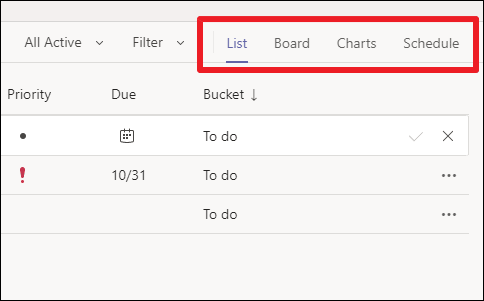 The To-Do tasks can only be viewed as a list, but the Planner tasks support 4 types of view. You can display your tasks in form of a List, Board, Chart, or Schedule.